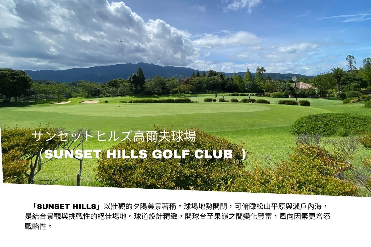 位於松山市郊丘陵地區的「サンセットヒルズ高爾夫球場(Sunset Hills Golf Club)」以開闊視野與俯瞰瀨戶內海的壯麗景觀著稱,是四國地區極具代表性的球場之一。球道設計結合自然地形,挑戰性與趣味兼具,特別是後九洞隨著地勢起伏,能在揮桿時欣賞松山全景。午餐特別安排在球場內享用 主廚特選餐食,體驗日本球場的貼心服務與美食文化。