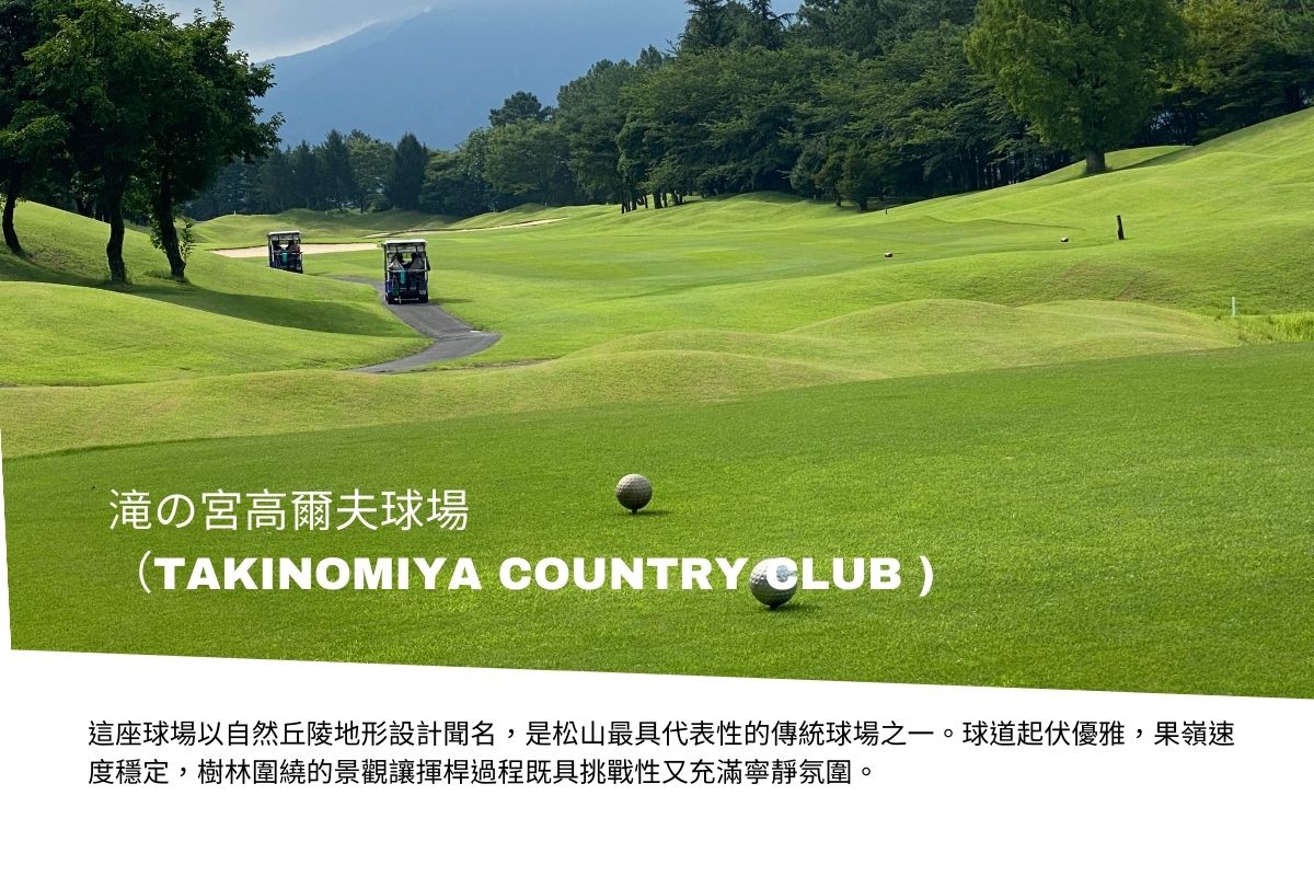 這座球場被譽為「松山最具自然風情的球場」,18洞設計依山勢而建,融合瀨戶內山景與森林氣息,每個球道皆有不同角度與難度,讓球友在挑戰中體驗四國獨有的自然魅力。果嶺速度穩定,球道保養細緻,途中可遠眺山巒與溪谷美景。