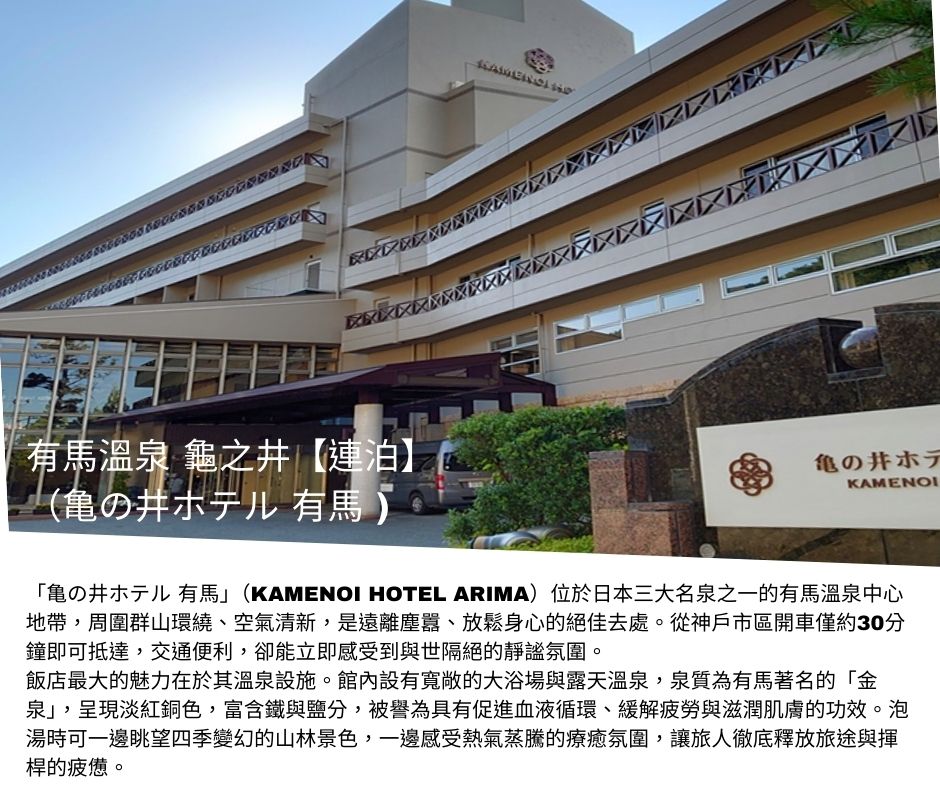 住宿:有馬溫泉 龜之井溫泉飯店 或同等級