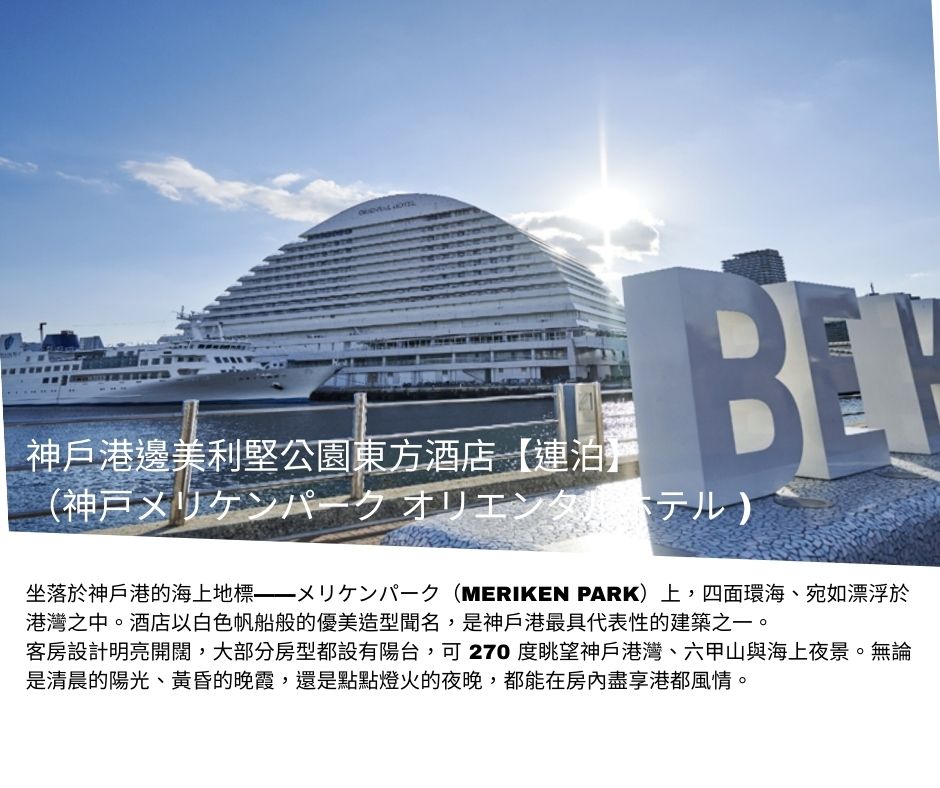 住宿:神戶美利堅公園東方酒店 或 市區蒙特利飯店 或同等級